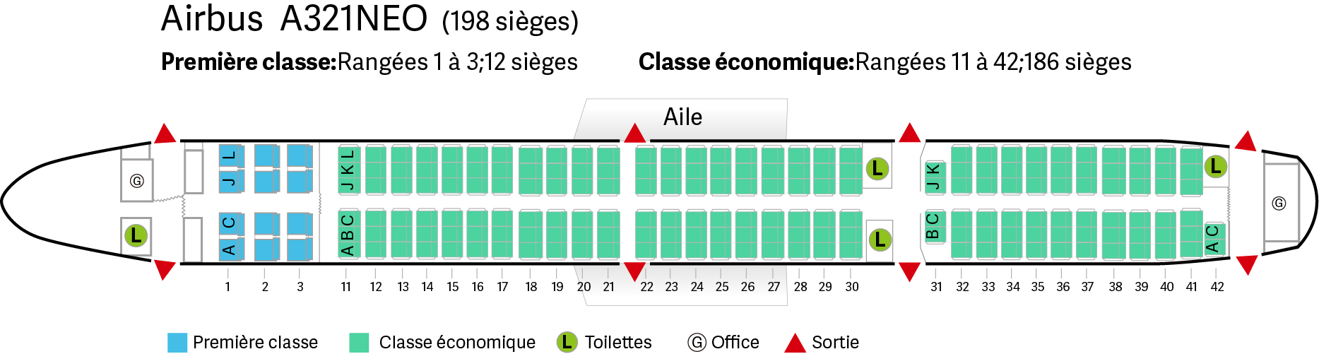 | Appareil | Nombre total de sièges | Classe affaires | Classe économique |
